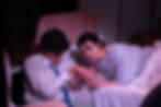 Dean Elliott’s direction tries to balance intimacy and surrealism, but the result sometimes leaves the play feeling unsure of itself. Split-screen visual moments appear without a clear dramatic purpose, and several transitions feel slightly out of rhythm, with cast doing awkward push and pull with uncertainty. The hospital set – a bed, screen, table, chairs, and a vase of flowers – is simple and appropriate, but placing everything at the very back of the stage unintentionally distances the audience from scenes that should feel close and raw.