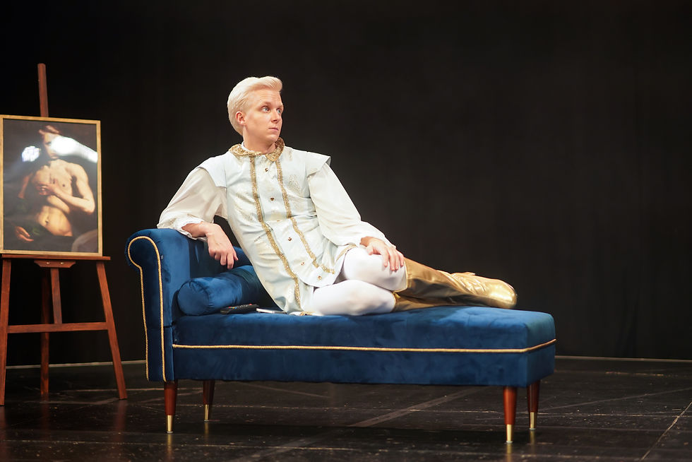Let’s be clear - you don’t go to an Awkward Productions show for the plot, though there is more to be found in The Fit Prince than you might expect. By sending up an entire genre with a rich pool of titles to play on, they get a chance to hone their comedic skills, and the result is gloriously chaotic. Karp and Martin have carved out their own niche in the theatre landscape with their own brand of queer comedy and a distinct style, making any of their shows instantly recognisable. What is very clear to see with The Fit Prince, however, is their growth. Where their Gwyneth and Diana shows were already pretty exceptional, both earning five stars from me, they have reached a whole new level with The Fit Prince, making me pause to consider a sixth star. Their comedy somehow manages to feel more refined, while suitably chaotic. One aspect present in all of their shows is how it is always evolving, to fit in the latest pop culture references, and replace it when the next one comes along in a constant revolving door of comedy - almost like the theatrical equivalent of the Sugababes. One such example is a brilliantly landed send-up of Michelle Yeoh’s now viral “Wicked Witch” revelation, giving me the biggest laugh of the night.