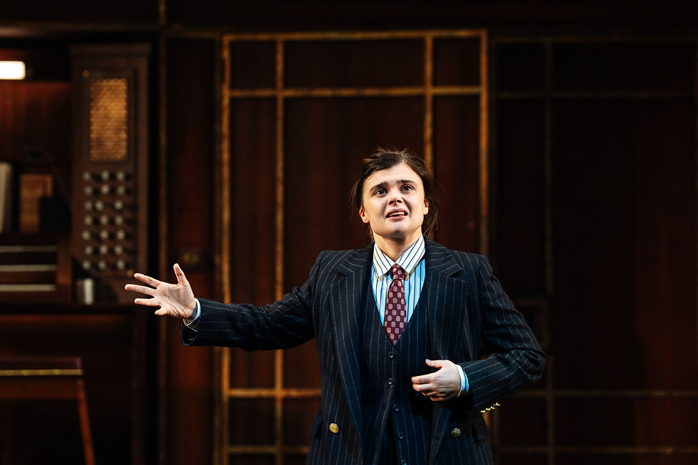 Michael Grady-Hall is endlessly watchable as Feste, whether adorned in a bee costume, being lowered from the ceiling, hiding atop a colossal pipe organ overwatching the proceedings like a menacing puppet-master. His consistently strong work extends to a fine singing voice, which makes for both a humorous, invigorating entrance for the character, and a quiet, melancholy outro for the show as a whole. As the ill-fated steward Malvolio, Samuel West is also remarkably strong, leaning into the eccentricity of a famous scene involving stockings and garters, and delivering his final lines with a real sense of dread that condemns both his household and the audience for the cruelties done to him – both, impressively, with a powerful sense of presence and surety of performance.